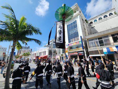 那覇大綱挽まつり 国際通りでの旗頭行列